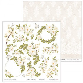 The central place on the card is occupied by chipboards arranged in layers: a frame and a cup. Around them, Ewa arranged a composition of handmade paper flowers. Flowers were stamped with Laserowe Love stamps on a special paper, also available in our offer. Between the flowers you will notice leaves cut from Holy & White strips and sheets as well as stamped on tracing paper and hot embossed. The card is housed in a window box, also decorated thematically.